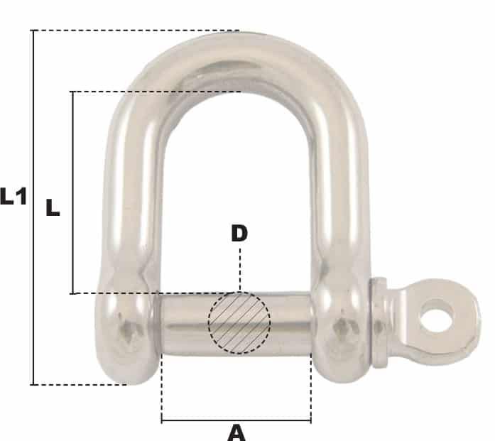 Manille droite à piton à oeil Ø 4mm (Inox)