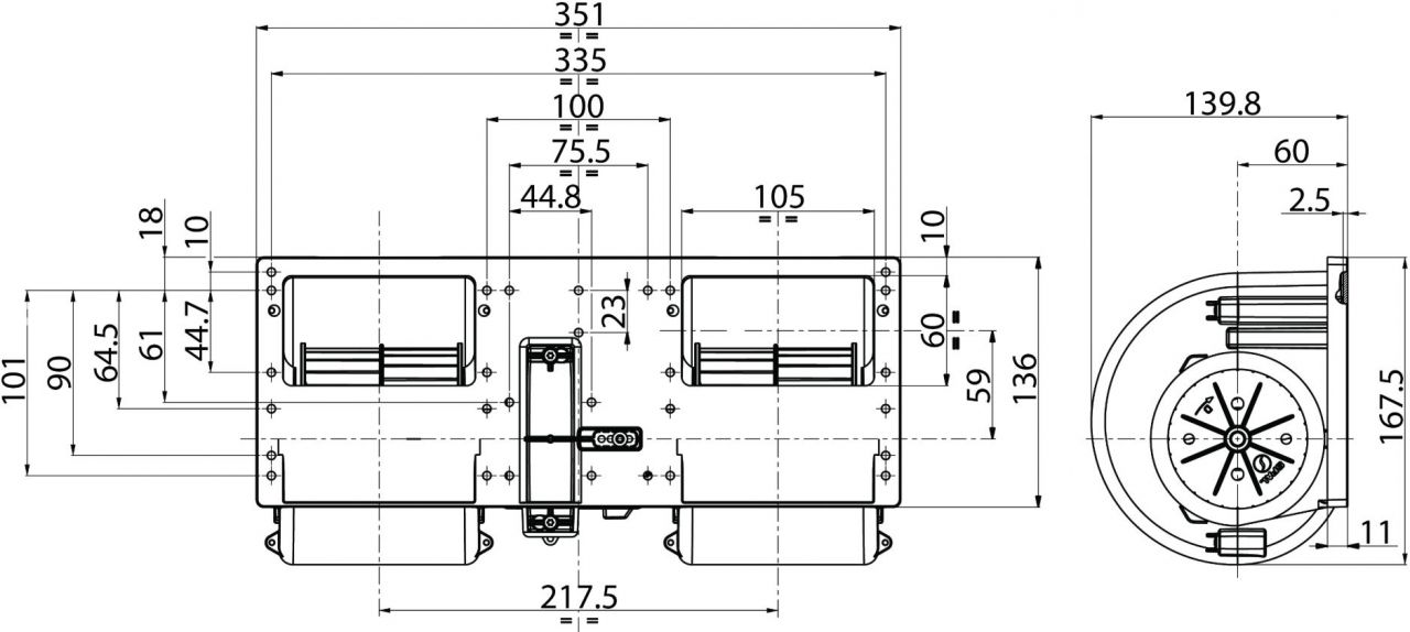 Côtes et dimensions du moteur de chauffage HC-CARGO F032160512