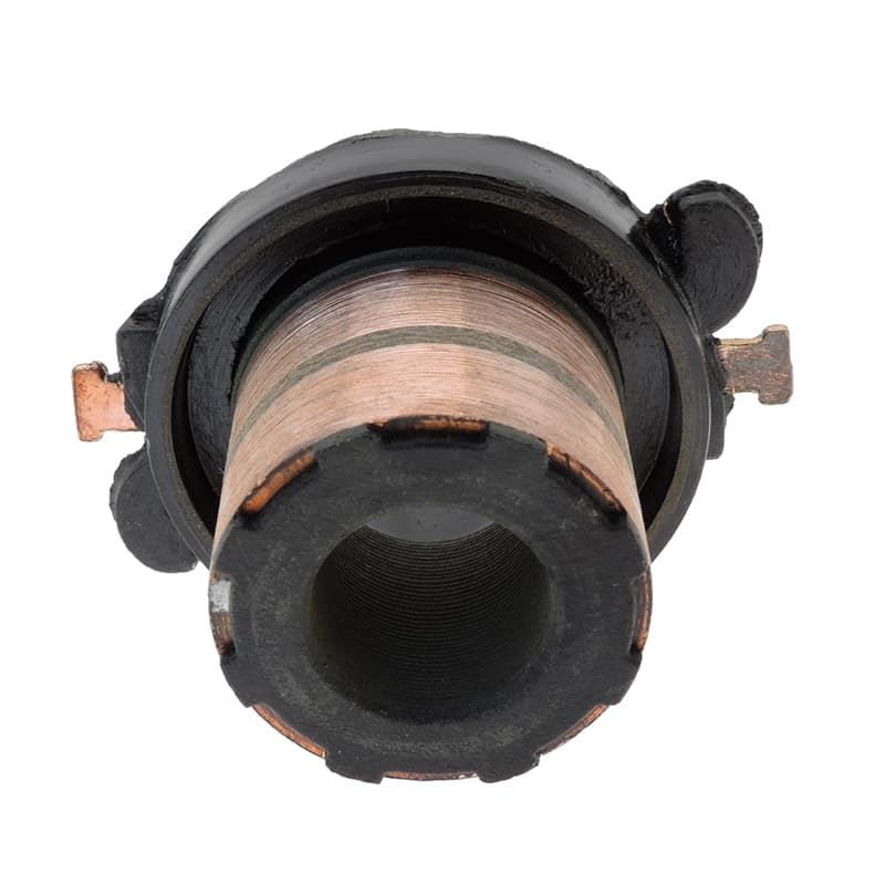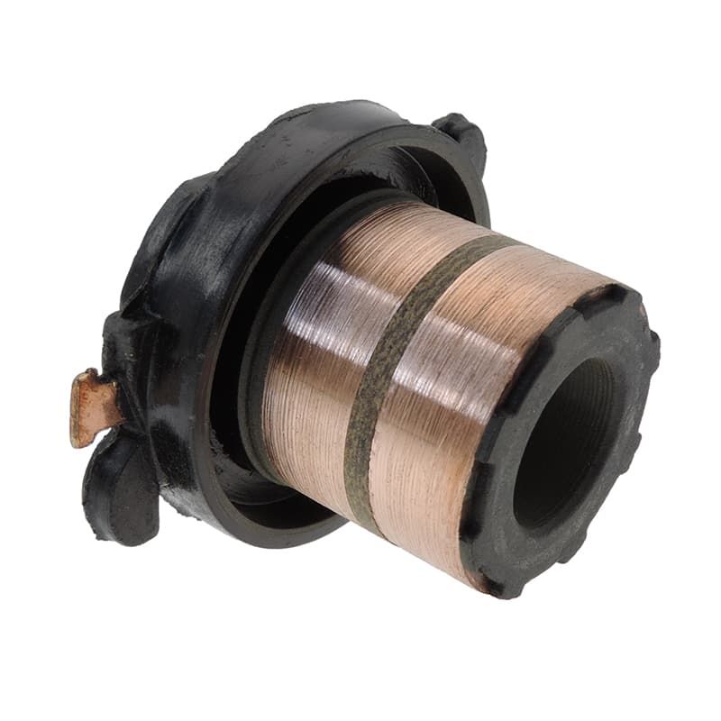 Comme vous pouvez le voir sur cette photo, les pistes de cuivre de cette bague collectrice ont été usées par le frottement des balais de charbon.