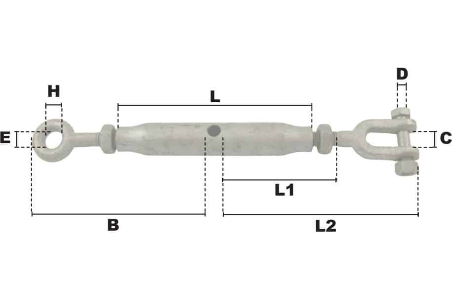 La charge de rupture est obtenue en multipliant la charge maximale d'utilisation par le coefficient de sécurité 4. Livré avec contre-écrou montés. |